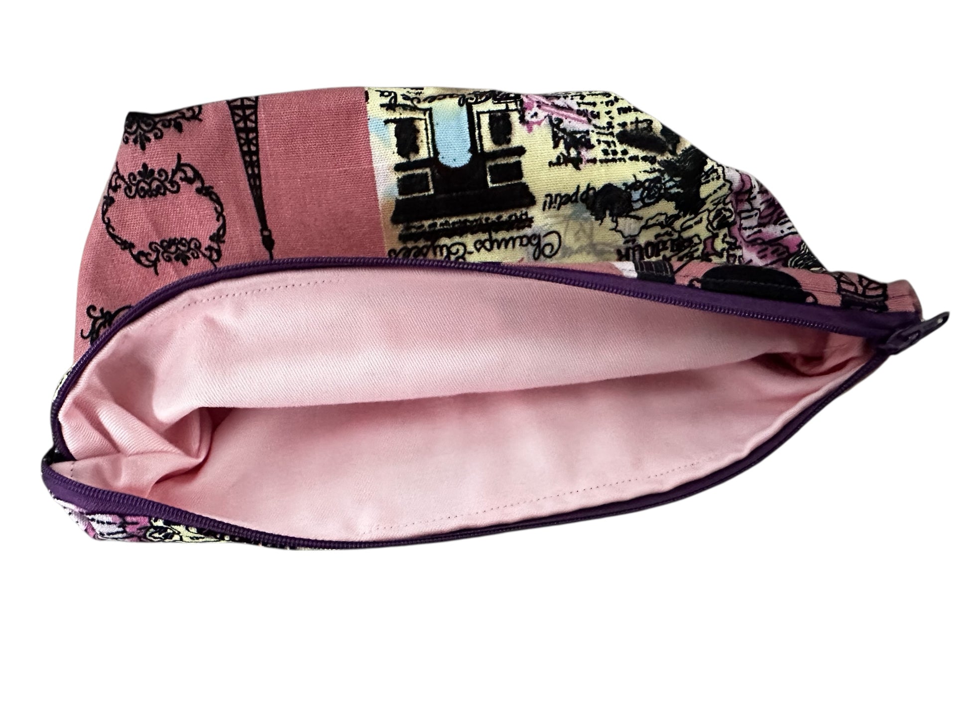 Carry a piece of Paris with you wherever you go. This handmade makeup bag features a charming Paris themed print, perfectly capturing the romance of the city. Whether for your daily essentials or a weekend getaway, it brings a touch of elegance to your vanity.