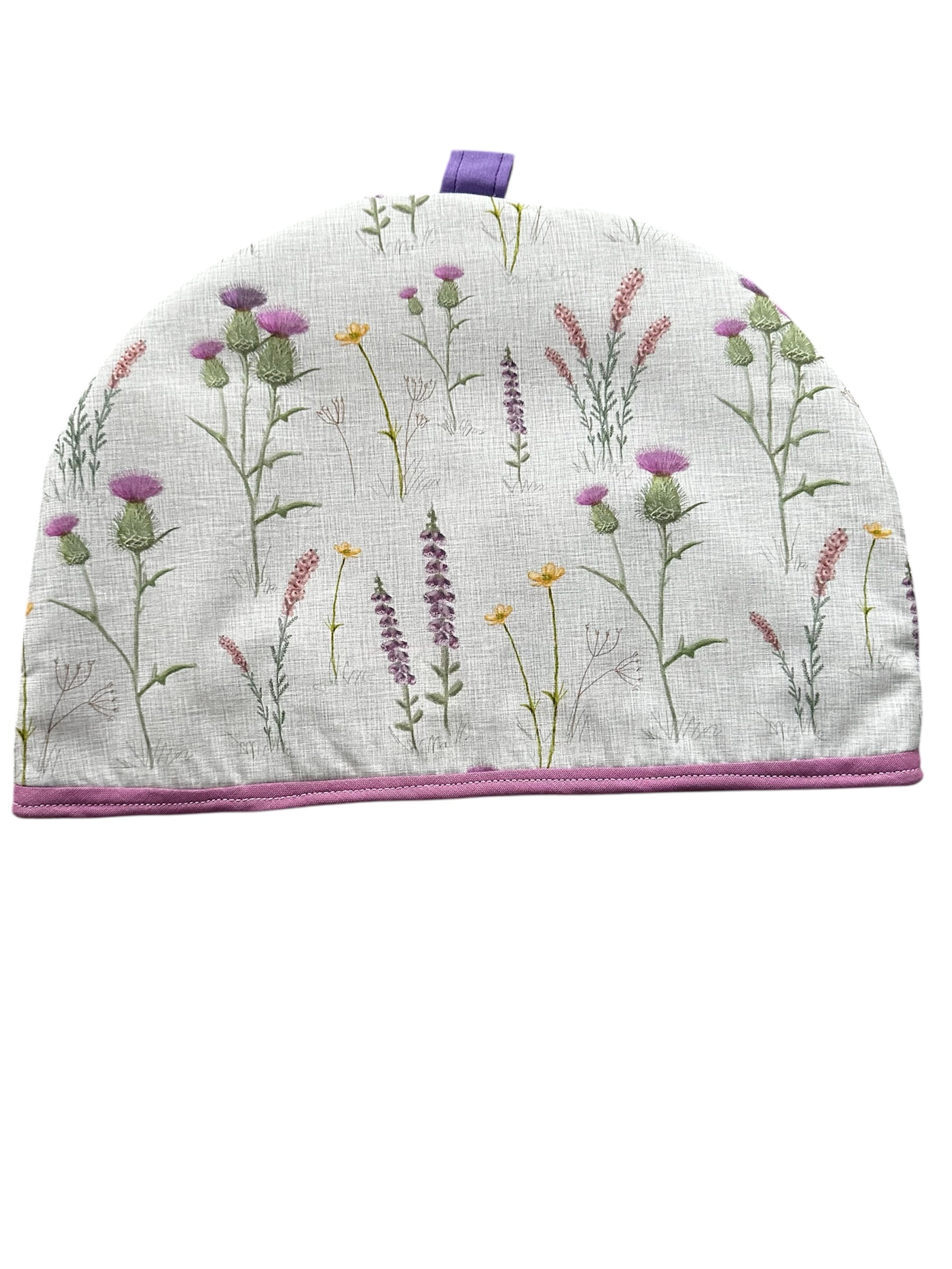 Small Cottage Style Tea Cosy purple thistles
